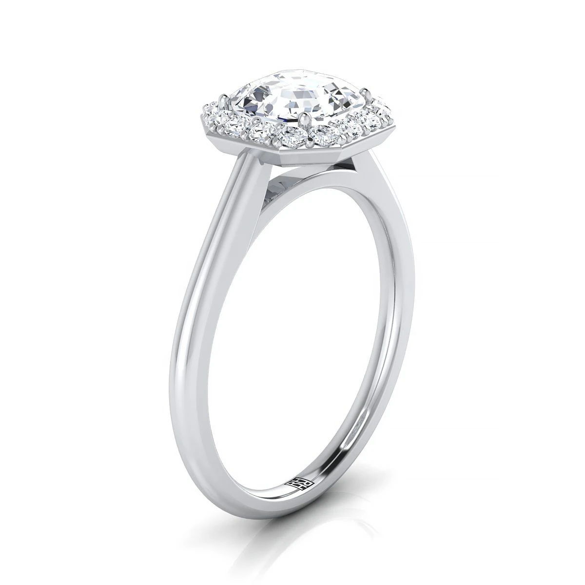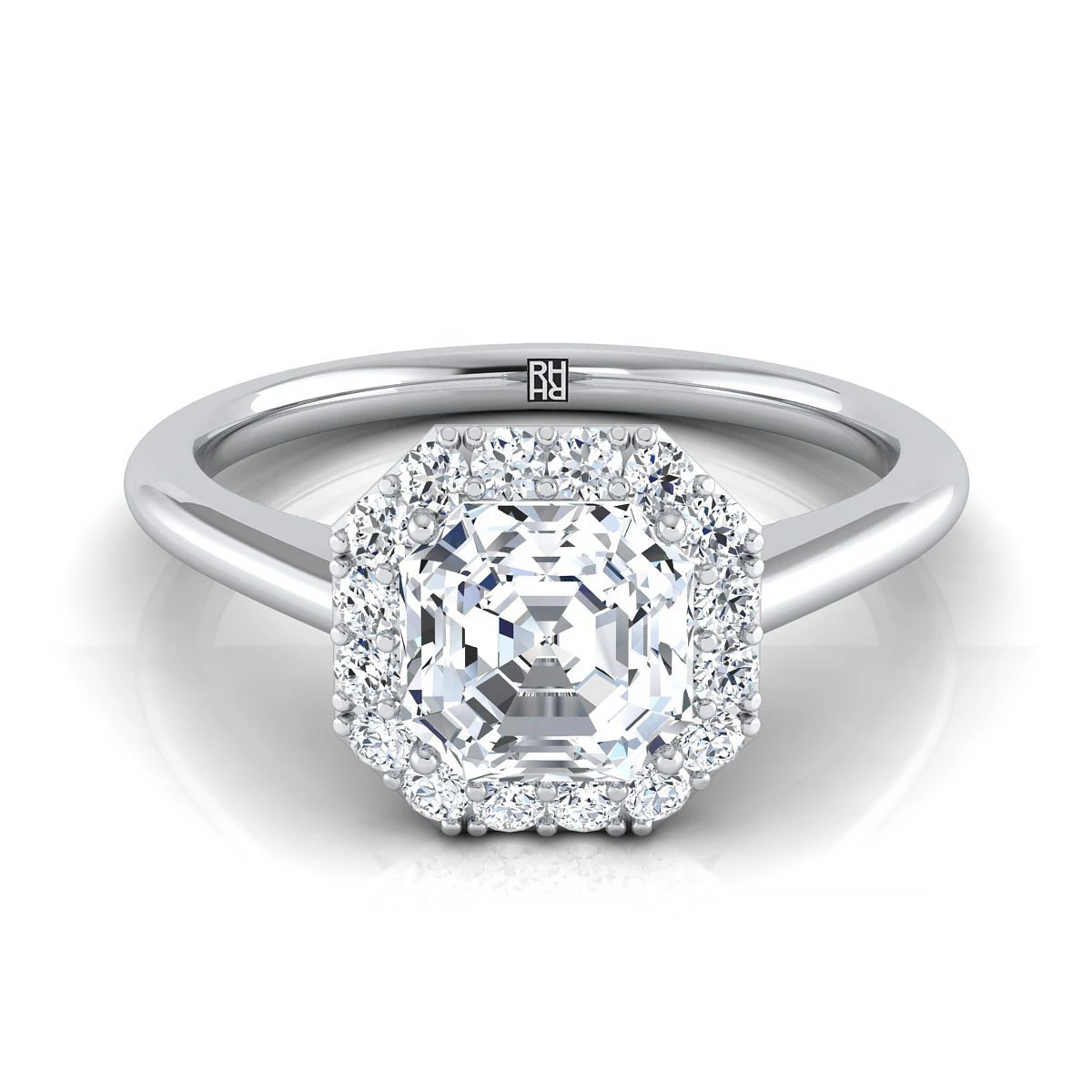 Platinum Asscher Cut Diamond Shared Prong Halo Engagement Ring -1/5ctw