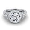 Platinum Cushion Diamond Classic Halo With Channel French Pave Engagement RIng-1/3ctw