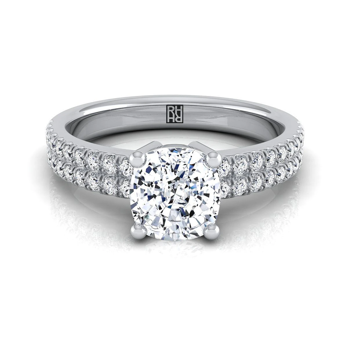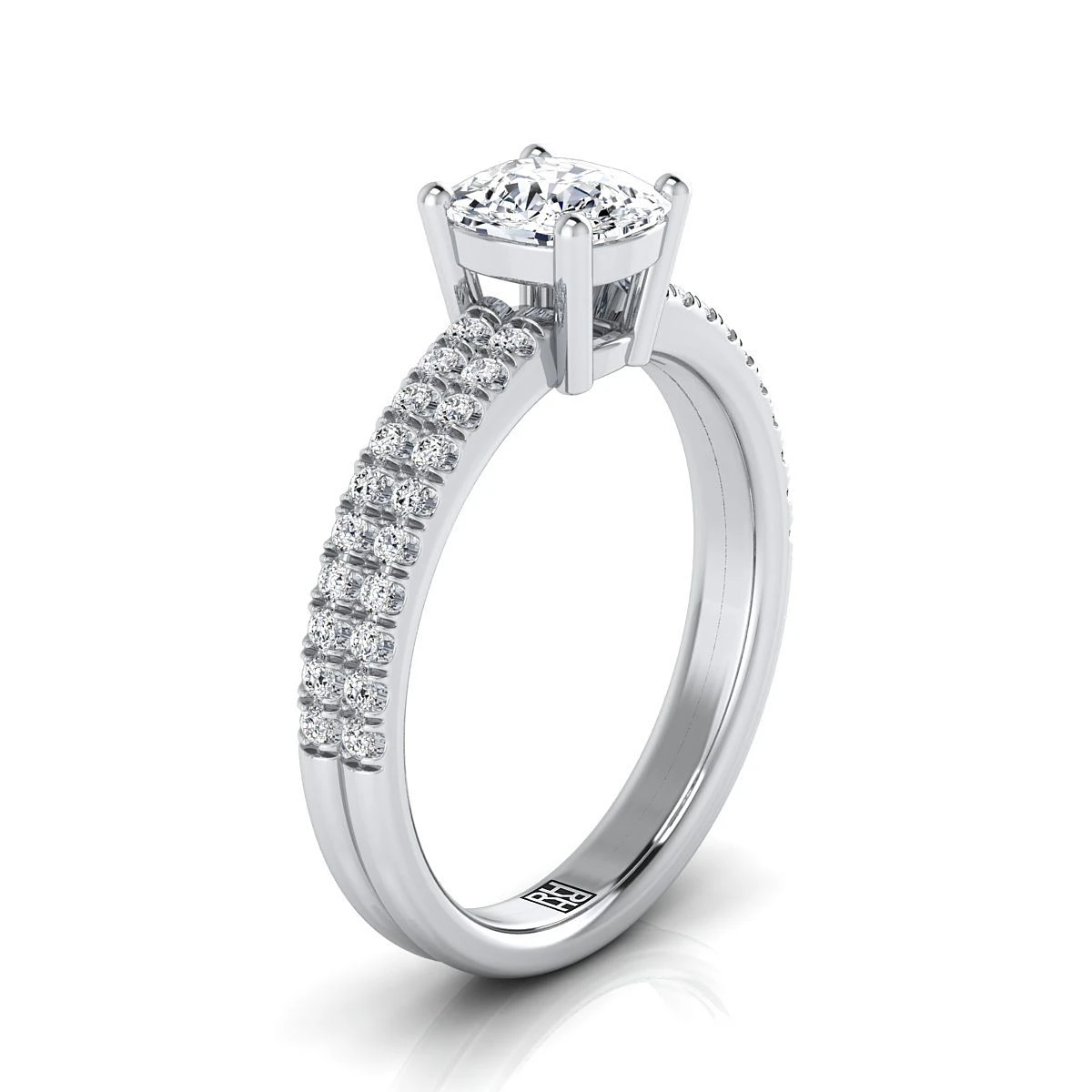 Platinum Cushion Diamond Double Pave Row Engagement Ring -1/4ctw