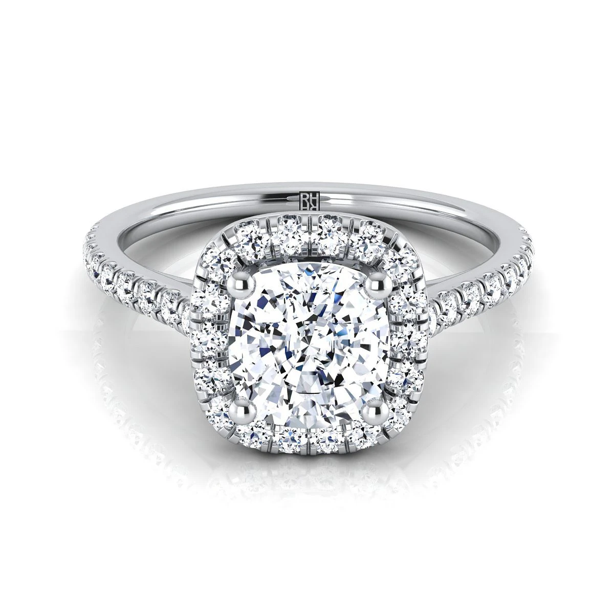 Platinum Cushion Diamond Pave Halo Engagement Ring -1/3ctw