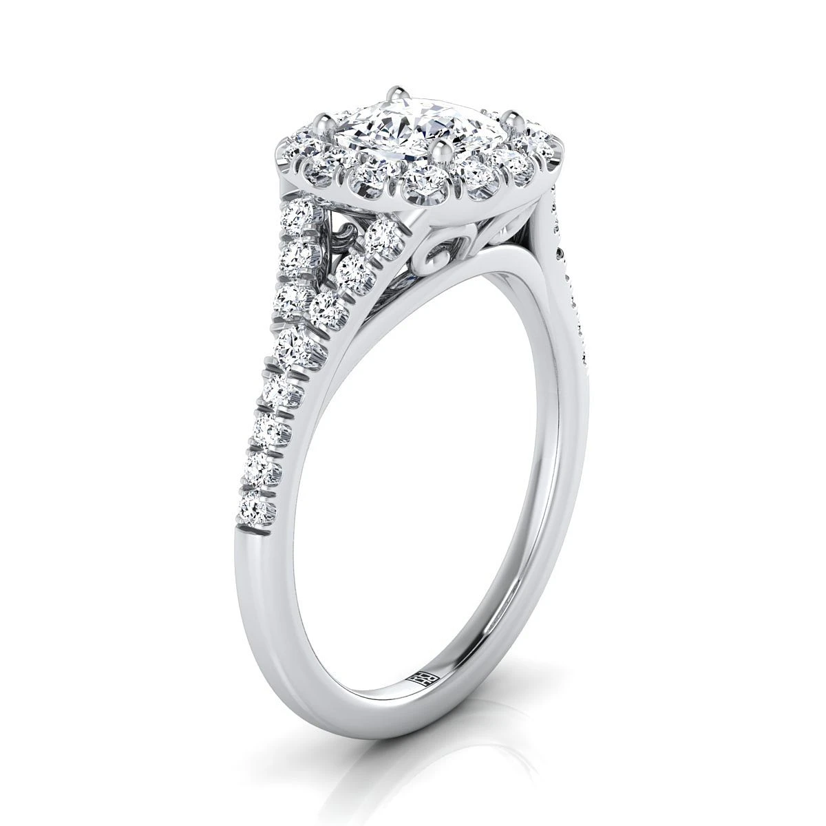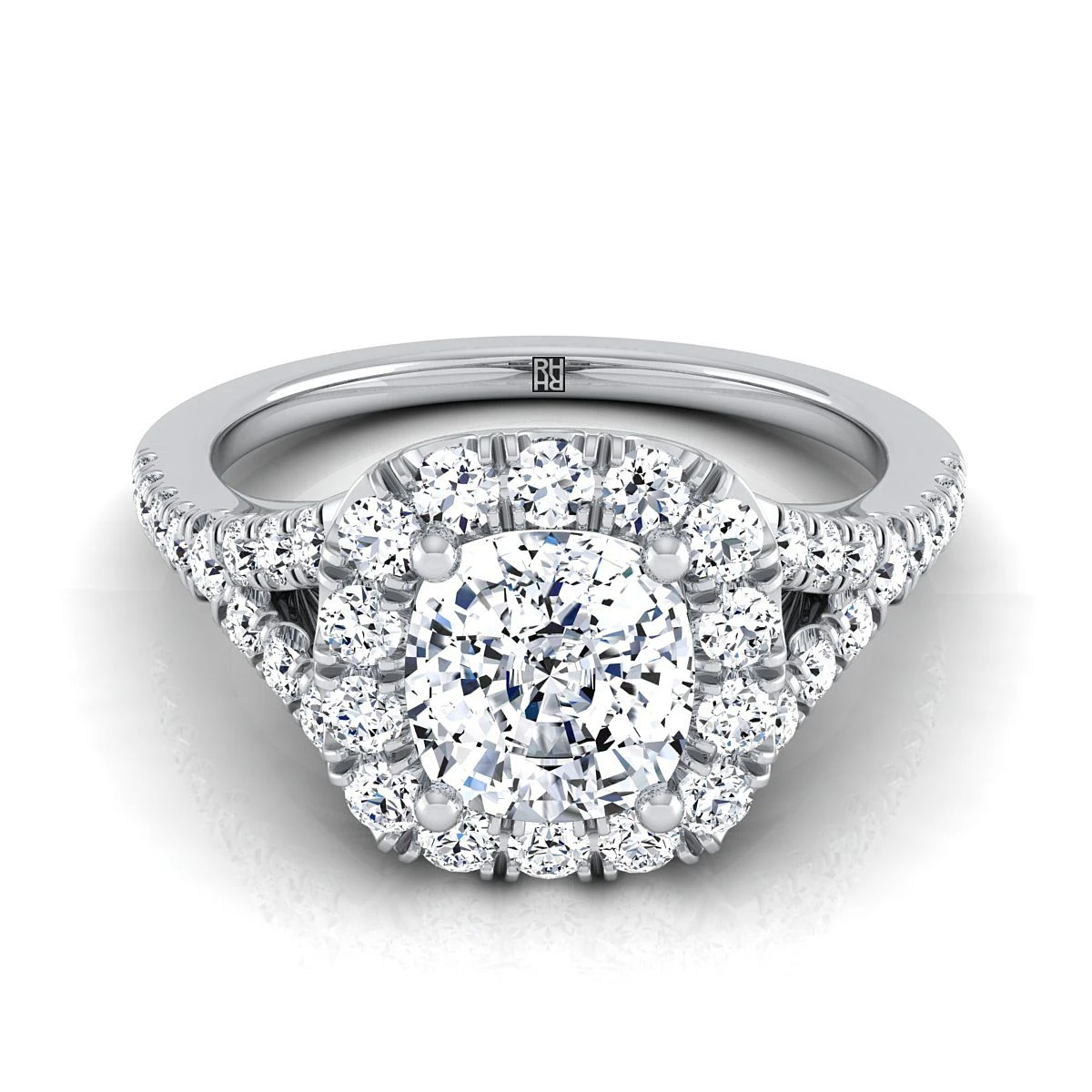 Platinum Cushion Diamond Simple Prong Halo Split Shank Engagement Ring -1/2ctw