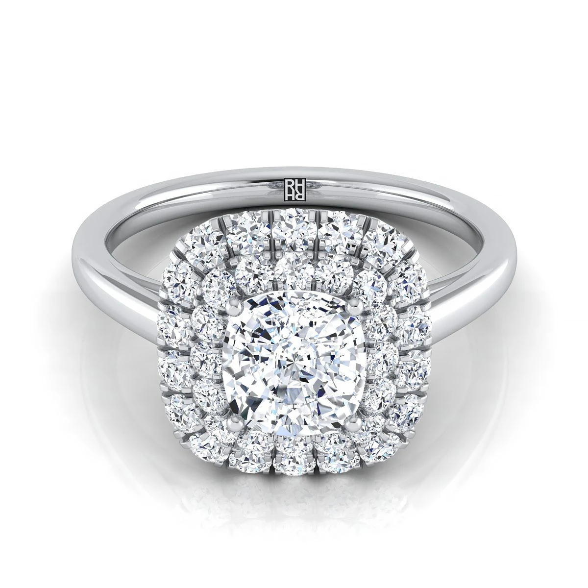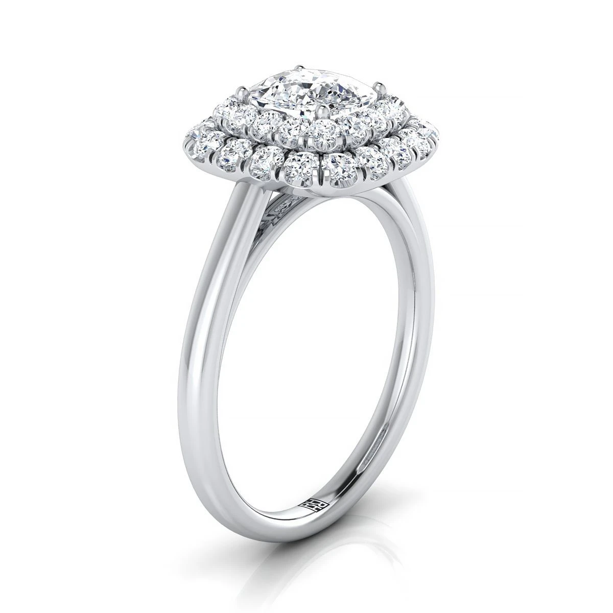 Platinum Cushion Diamond Stair Step Double Halo Engagement Ring -1/2ctw