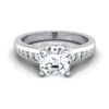 Understated Elegance, This Diamond Cushion Cut Engagement Ring In Platinum Showcases An Antique Inspired Engraved Design With A Classic Millgrain Finish.