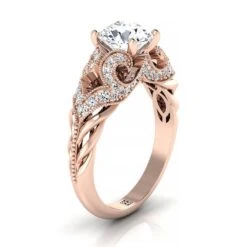 14K Rose Gold Round Brilliant Beautiful Open Scroll And Antique Bead Diamond Engagement Ring -1/3ctw