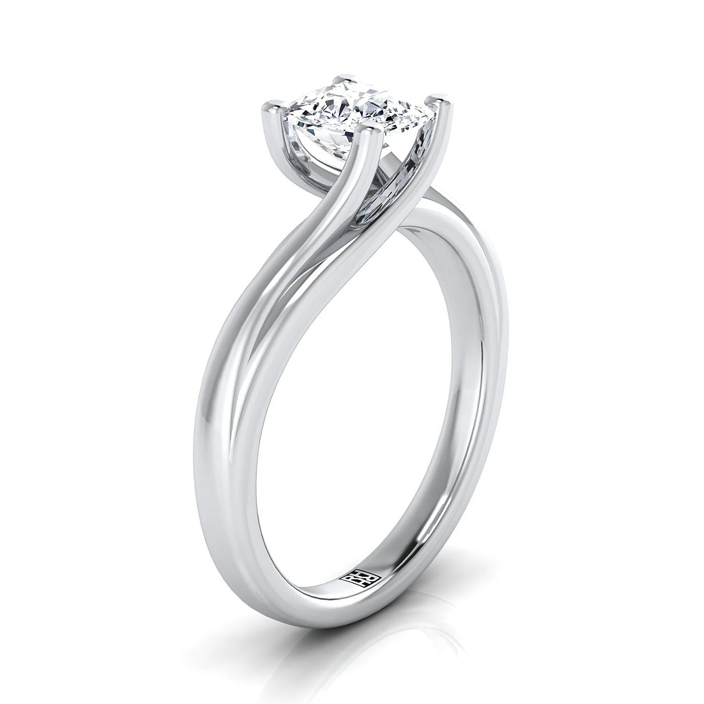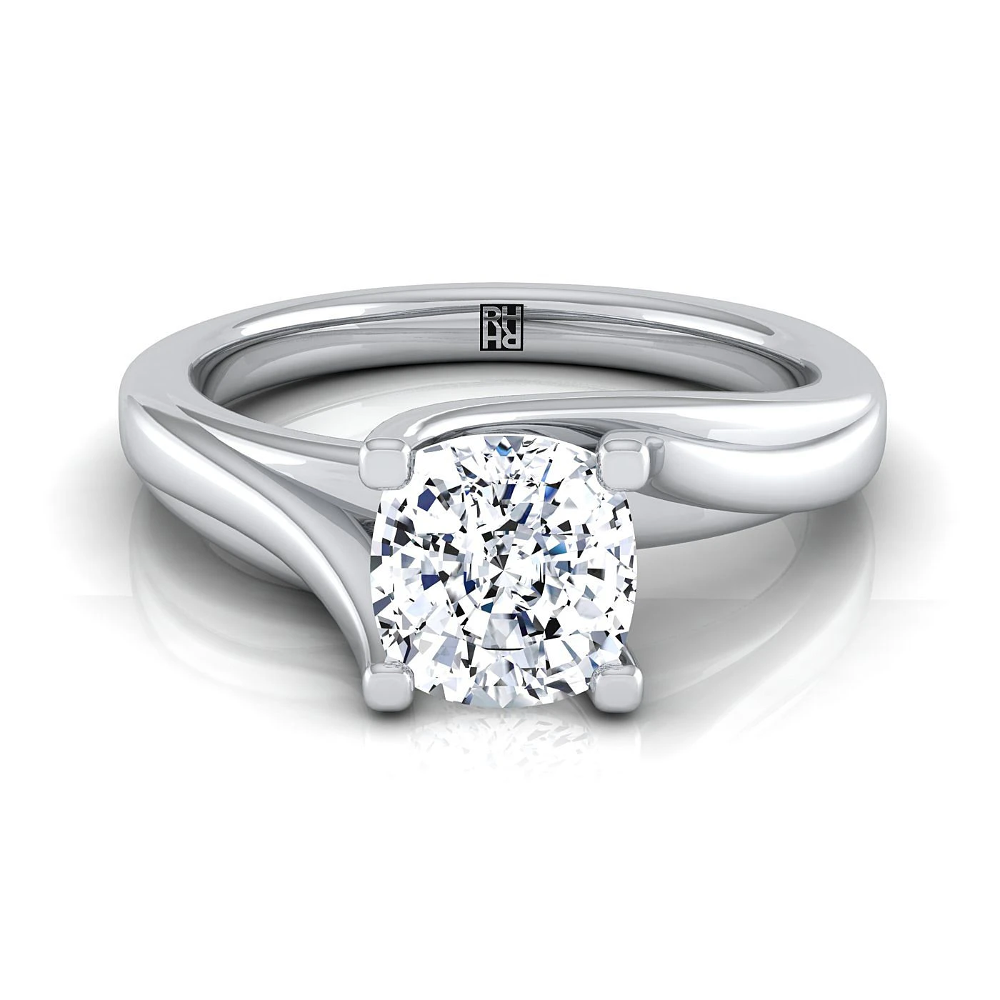 Platinum CushionTwisted Bypass Solitaire Engagement Ring