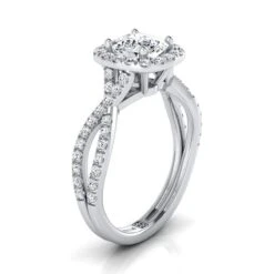Classic And Elegant, This Emerald Cut Diamond Halo Engagement Ring With A Pave Shank Showcases Brilliant Cut Diamonds (h-i/vs 0.50ctw) Beautifully Set In A Classic Platinum Setting.