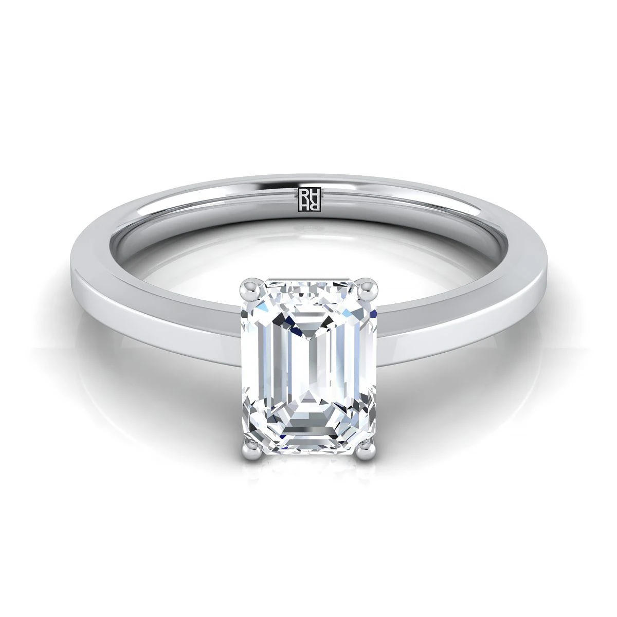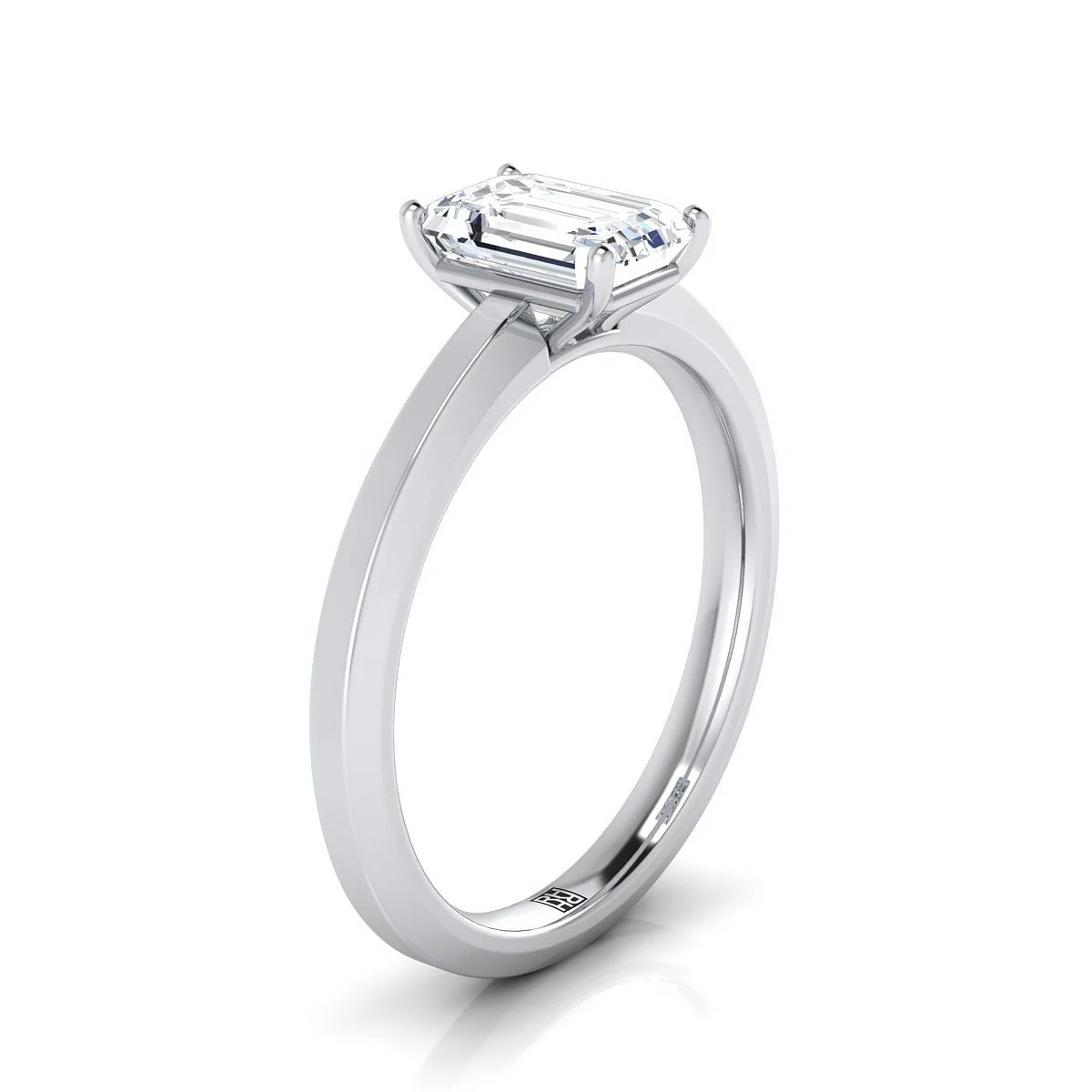 Platinum Emerald CutBeveled Edge Comfort Style Bright Finish Solitaire Engagement Ring