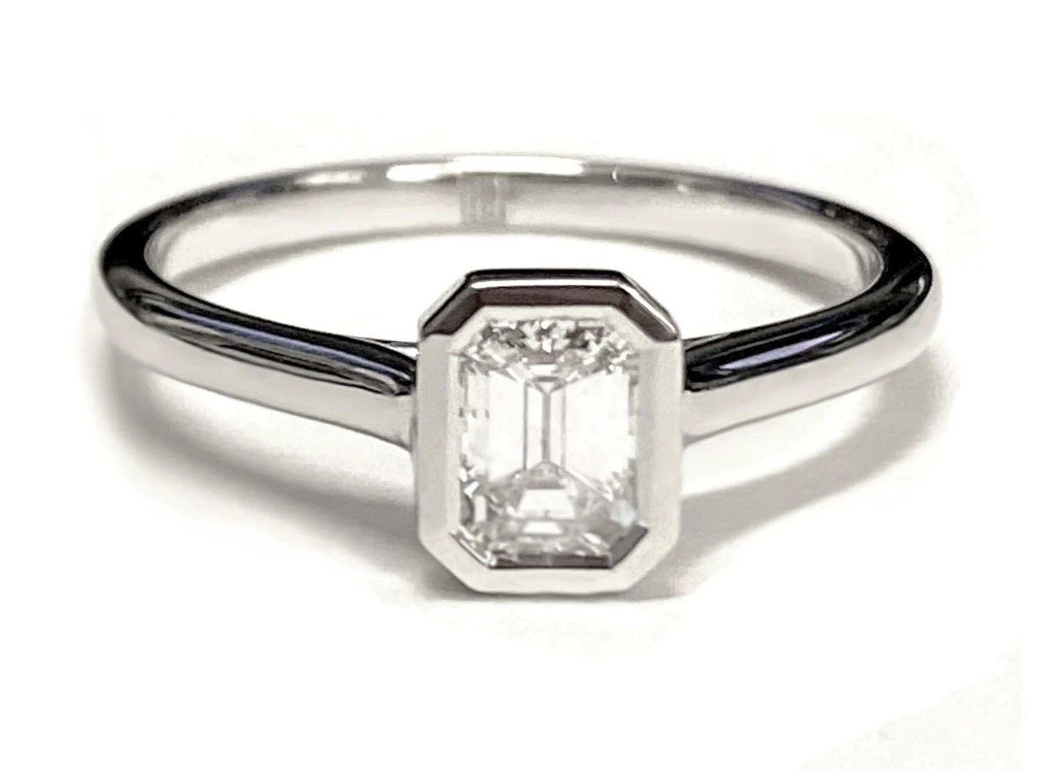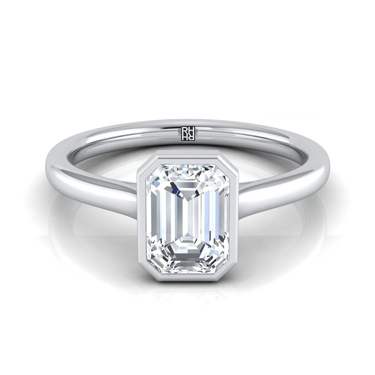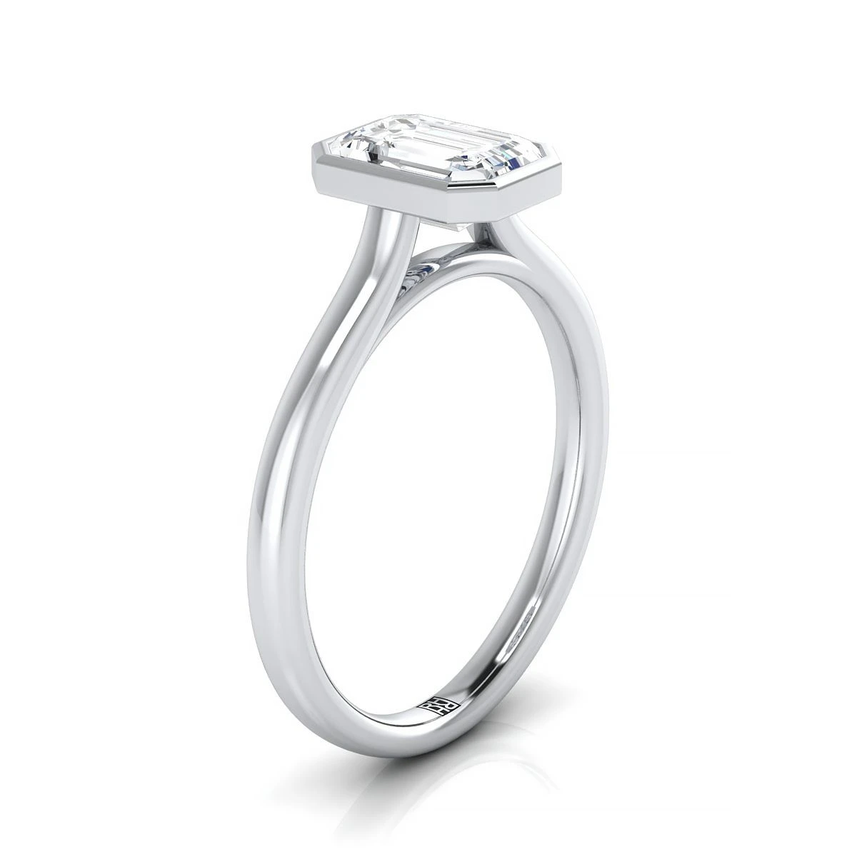 Platinum Emerald CutSimple Bezel Solitaire Engagement Ring