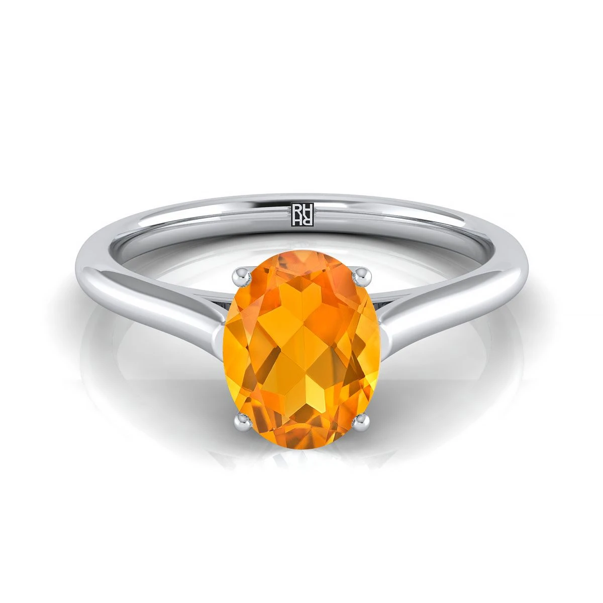 Platinum Engagement Ring With 8 X 6 Mm Oval Citrine Center Stone And Rounded Shank And Cathedral Setting