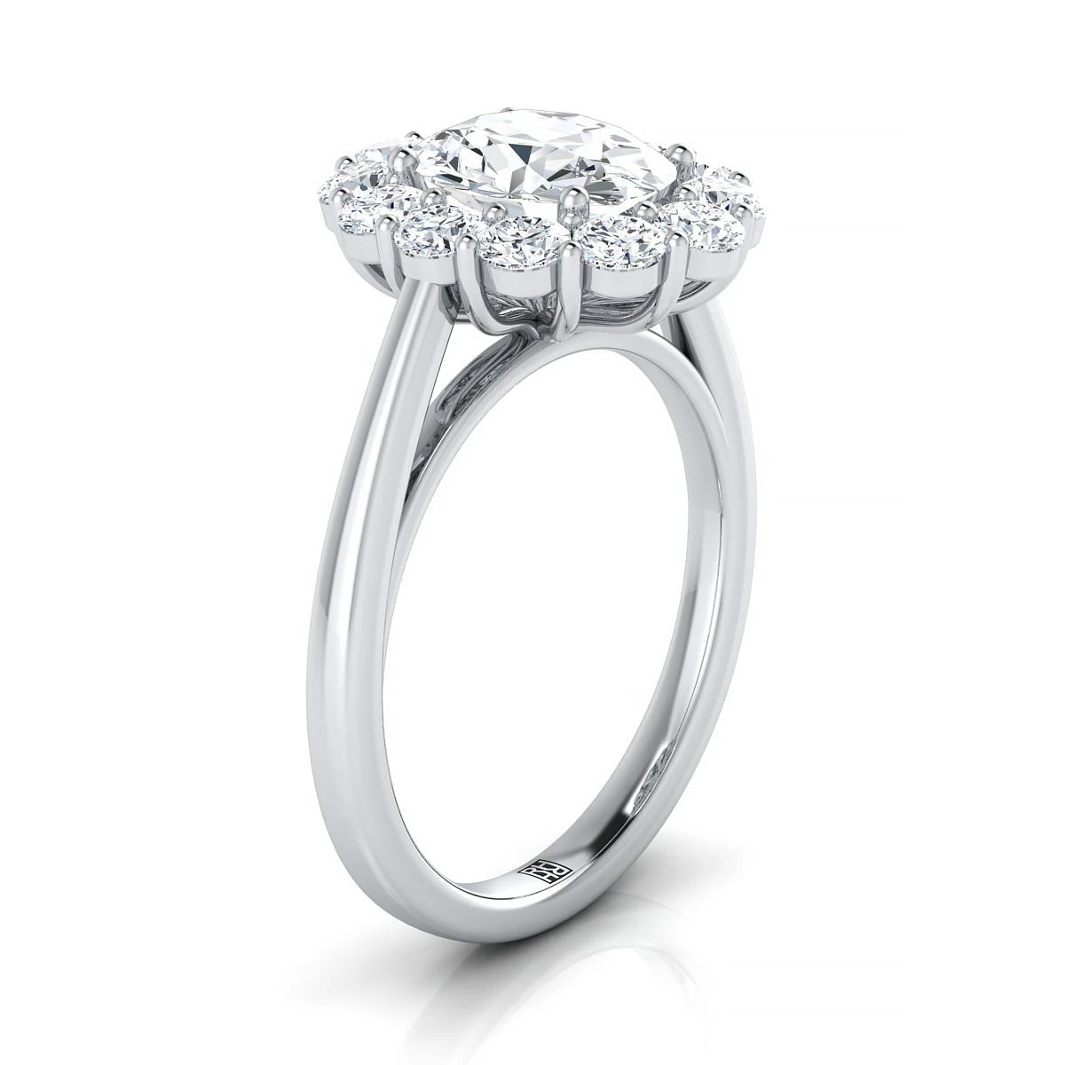 Platinum Oval Diamond Floral Halo Engagement Ring -3/4ctw