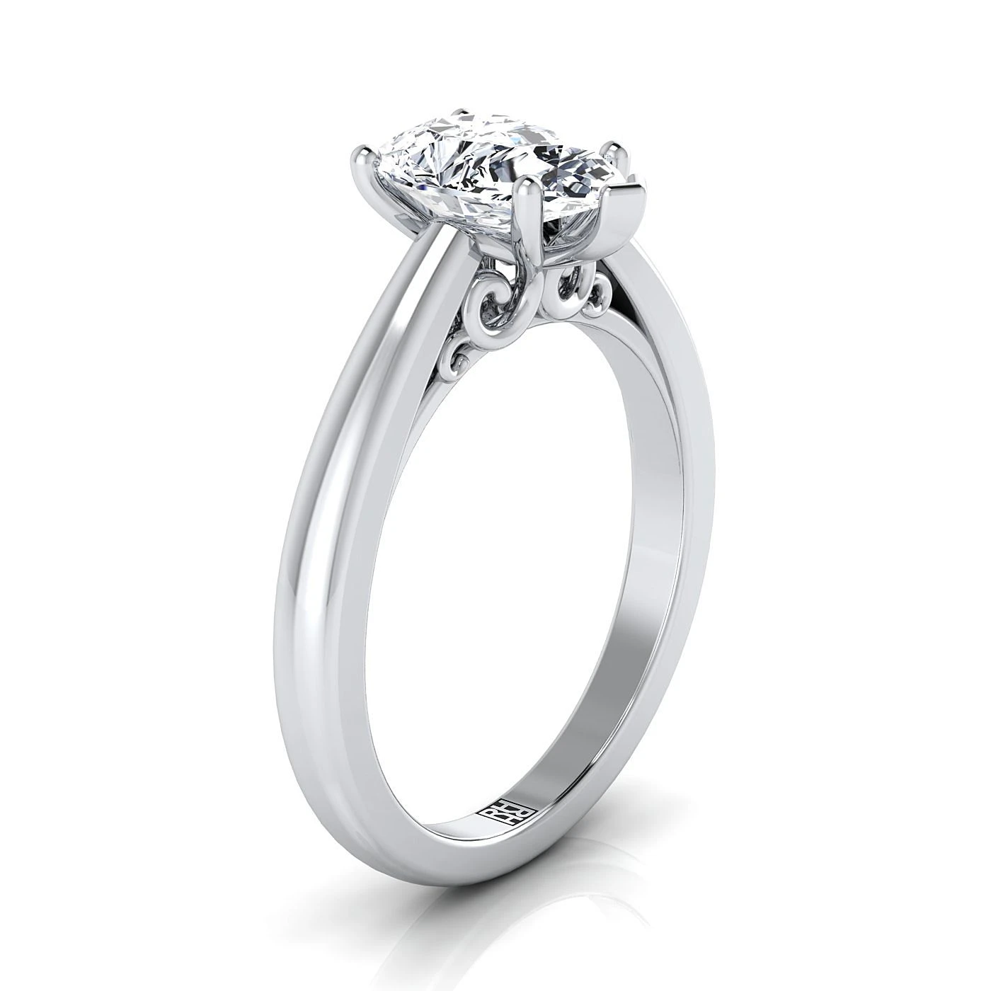 Platinum Pear Shape Center Scroll Gallery Comfort Fit Solitaire Engagement Ring