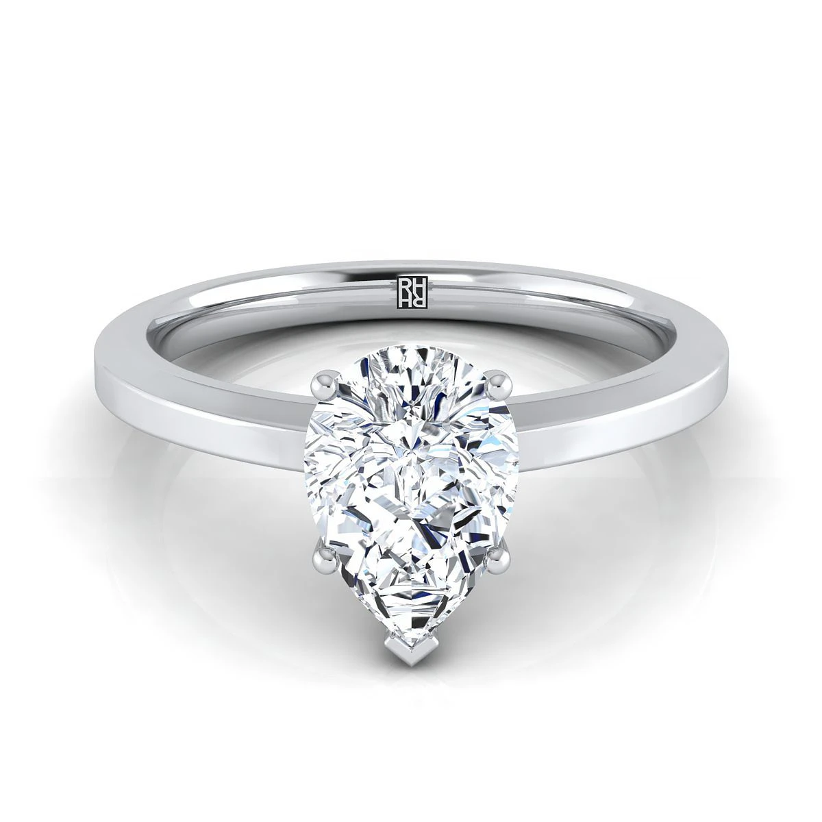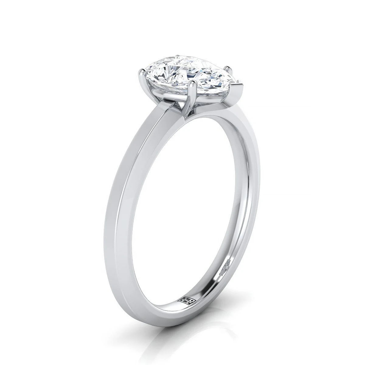 Platinum Pear Shape CenterBeveled Edge Comfort Style Bright Finish Solitaire Engagement Ring