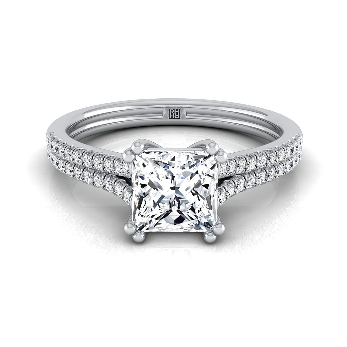 Platinum Princess Cut Diamond Double Row Double Prong French Pave Engagement Ring -1/6ctw