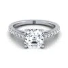 Platinum Princess Cut Double Pave Halo With Linear Diamond Engagement Ring -7/8ctw