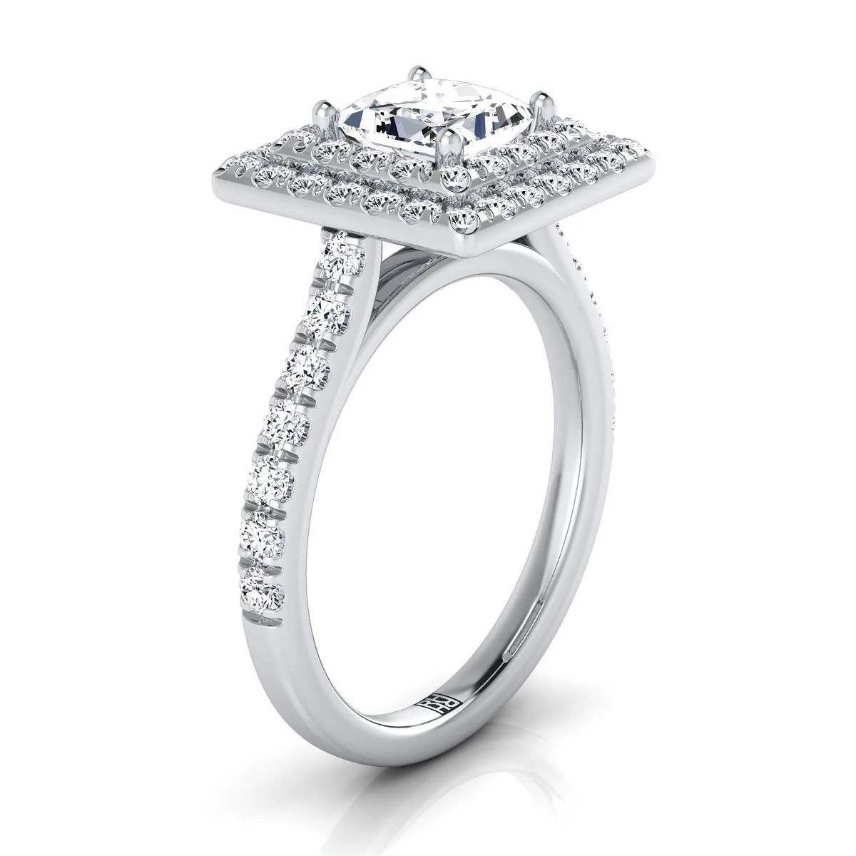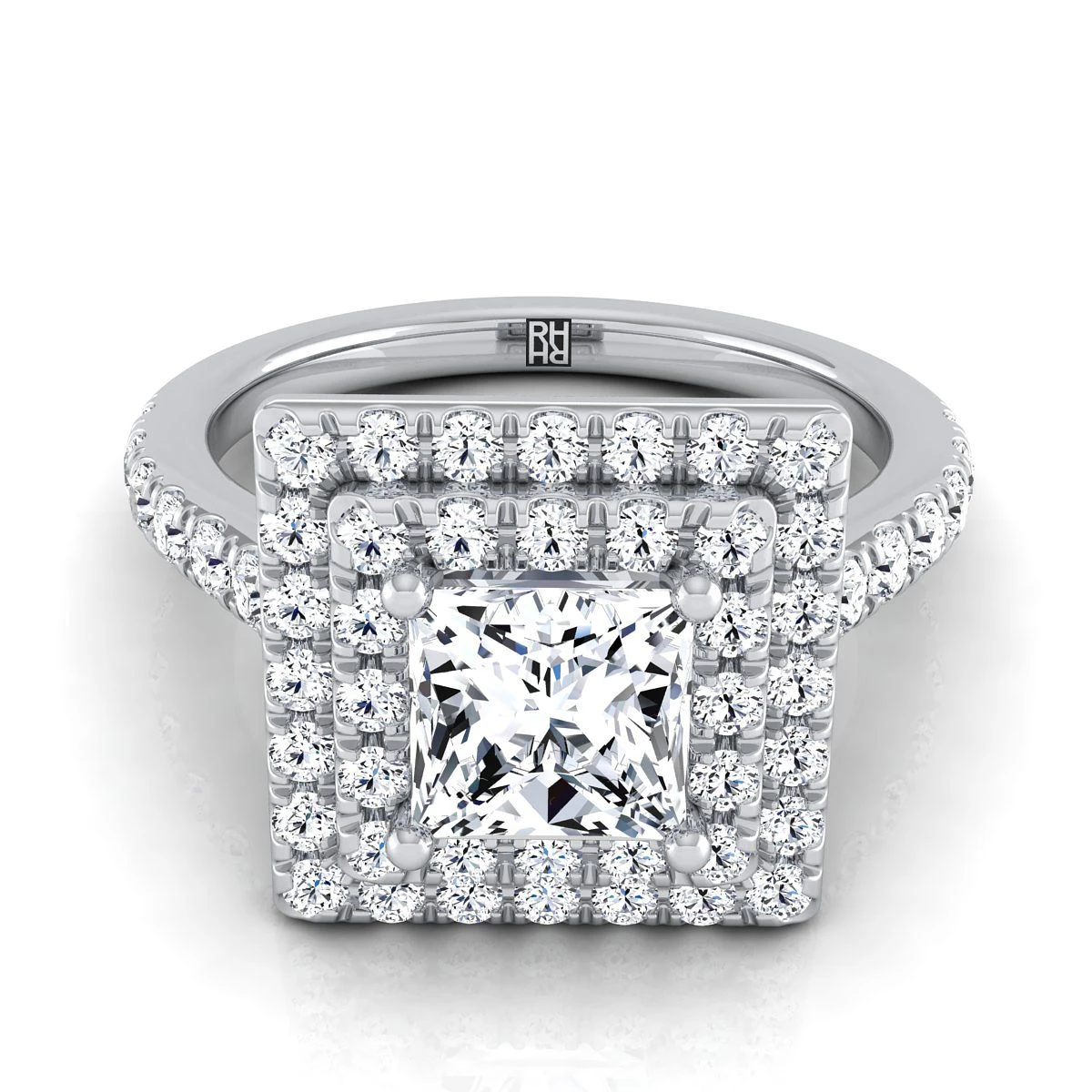Exquisitely Handcrafted, This Double Pave Princess Cut Halo Engagement Ring Showcases Brilliant Cut Diamonds (h-i/vs 0.80 Ctw) Beautifully Pave Set In A Classic Platinum Setting.