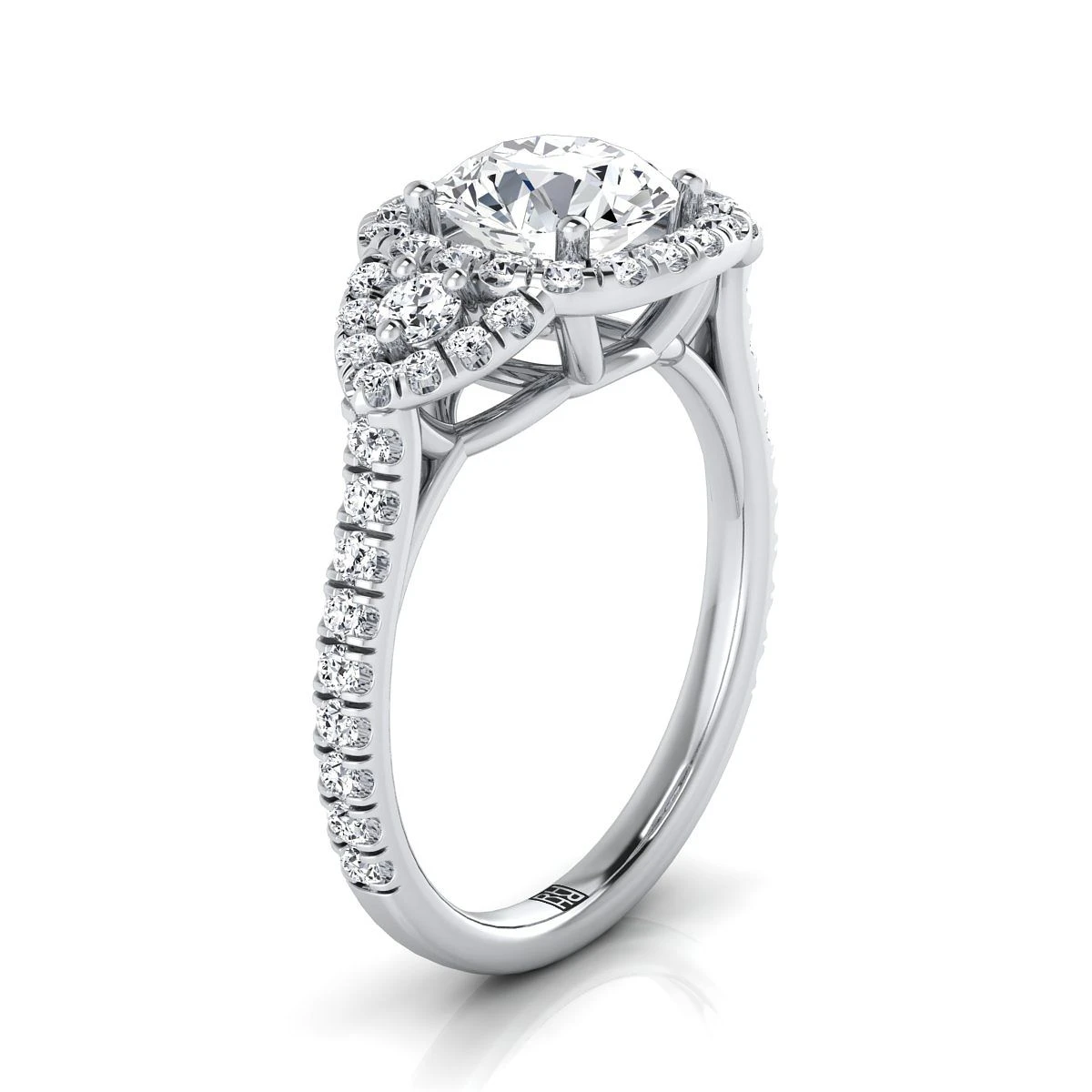 Platinum Round Brilliant Diamond Delicate Three Stone Halo Pave Engagement Ring -5/8ctw