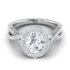 An Elegant Statement Of Style, This Halo Engagement Ring With Diamond Pave Shank Showcases Brilliant Cut Diamonds (h-i/vs 0.60ctw) Beautifully Set In A Classic Platinum Setting.