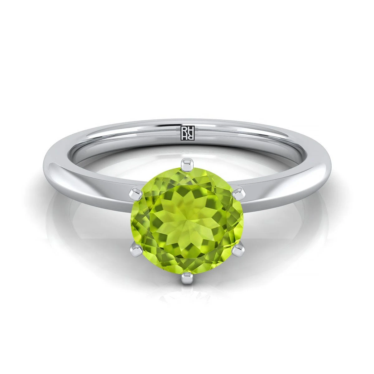 Platinum Round Brilliant Peridot Pinched Comfort Fit Claw Prong Solitaire Engagement Ring