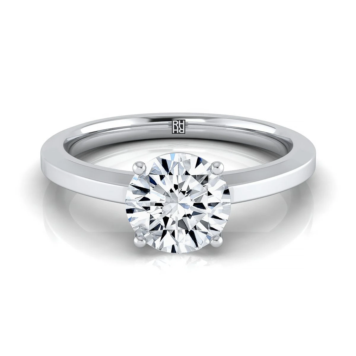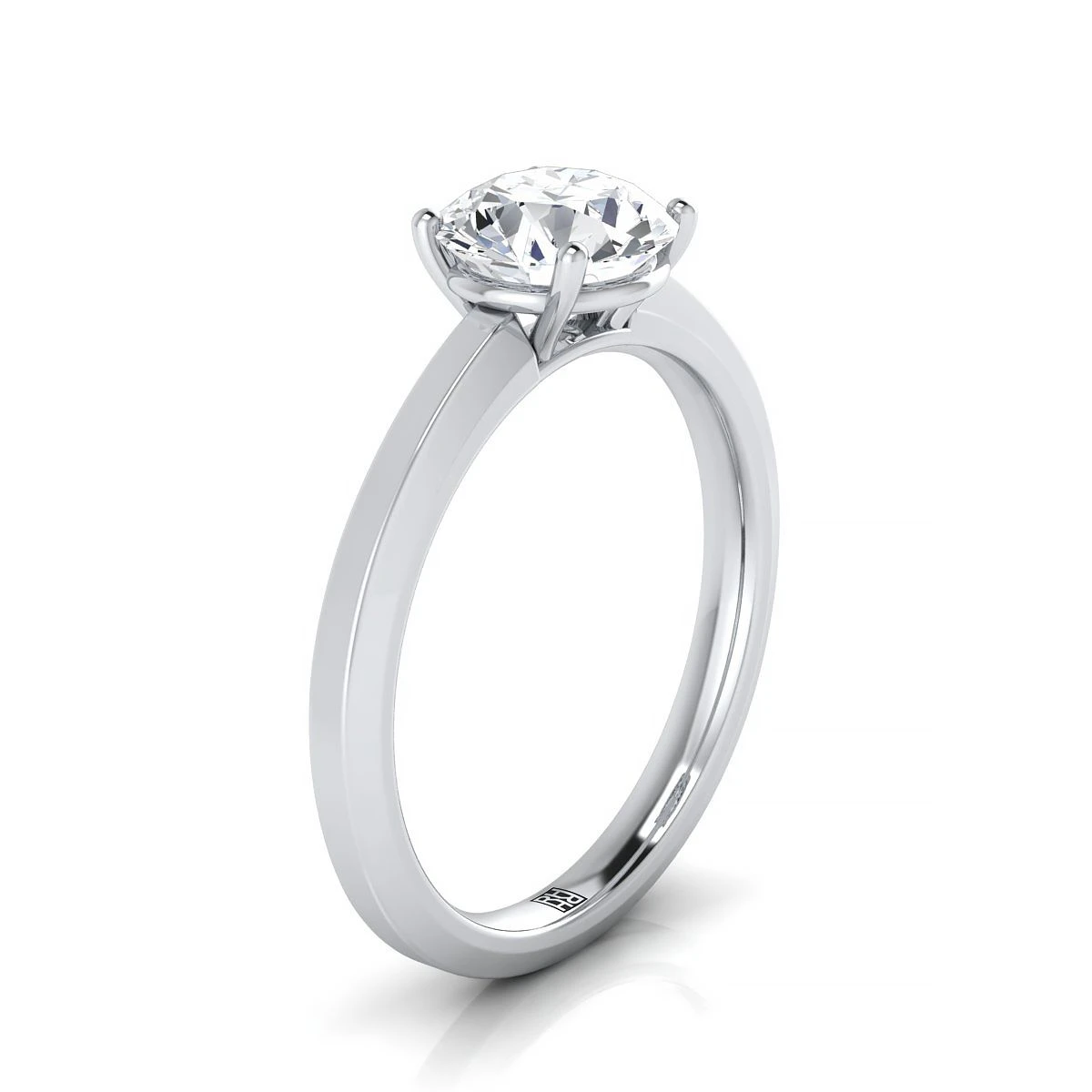 Platinum Round BrilliantBeveled Edge Comfort Style Bright Finish Solitaire Engagement Ring