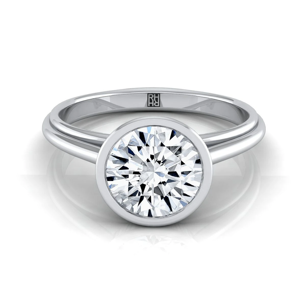 Understated Elegance, This Diamond Engagement Ring Setting Showcases A Bezel Set Diamond Solitaire In A Classic Platinum Setting.