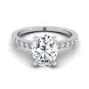 Platinum Round BrilliantSimple French Pave Double Claw Prong Diamond Engagement Ring