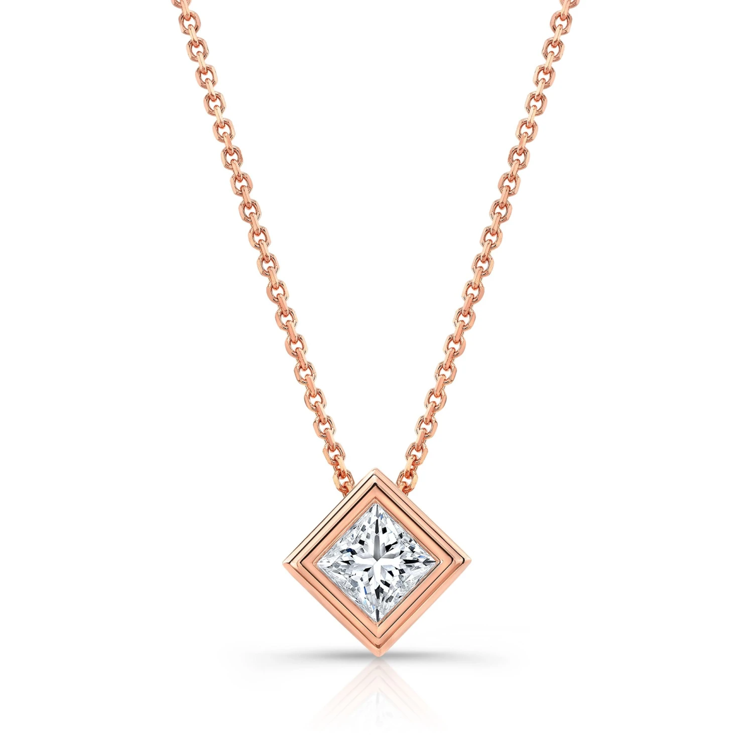Princess Diamond Solitaire Pendant In A 14k Rose Gold Bezel Slide Setting, 1.25ct. T.w. (hi, Si1-si2)