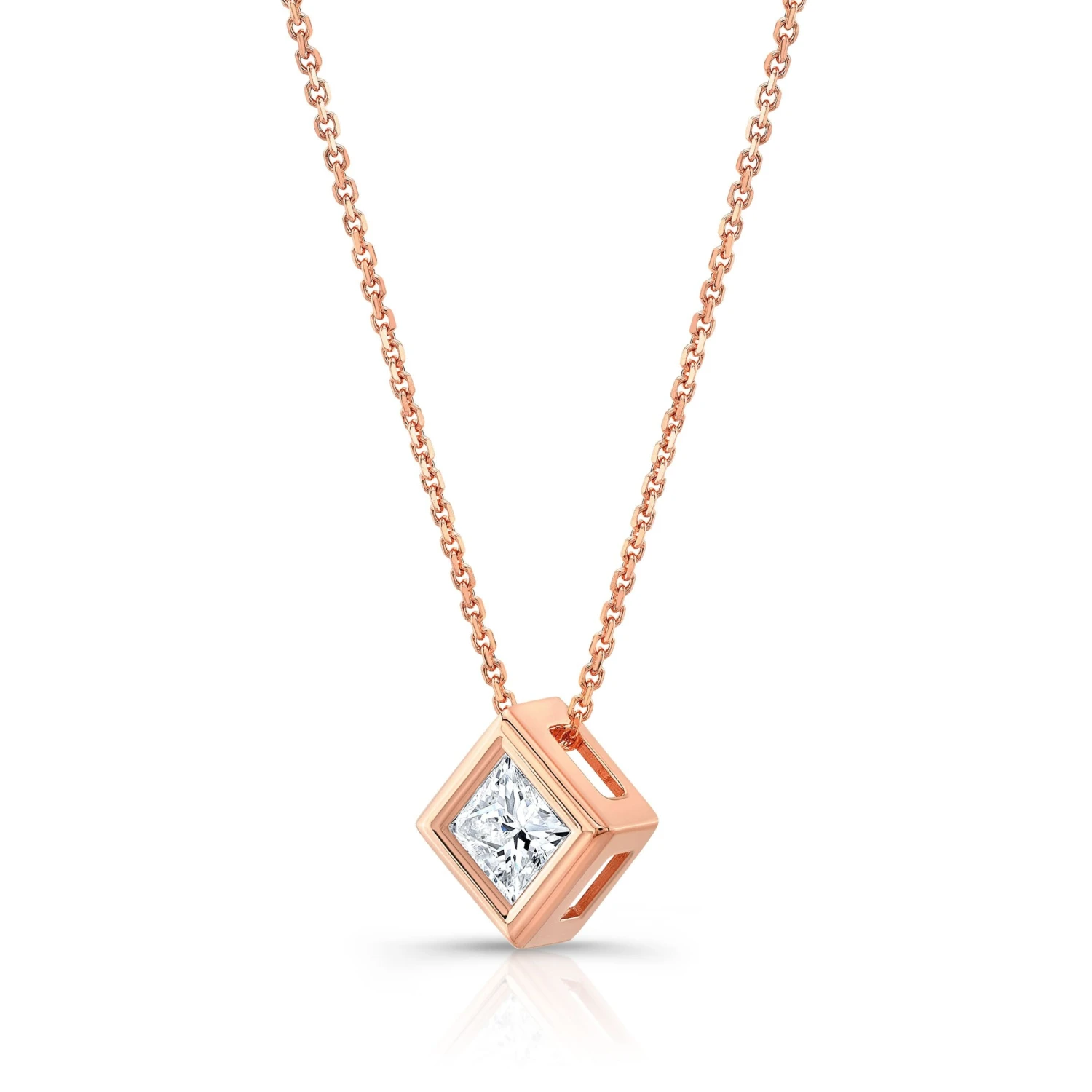 Princess Diamond Solitaire Pendant In A Platinum Bezel Slide Setting, 0.4ct. T.w. (hi, Si1-si2)