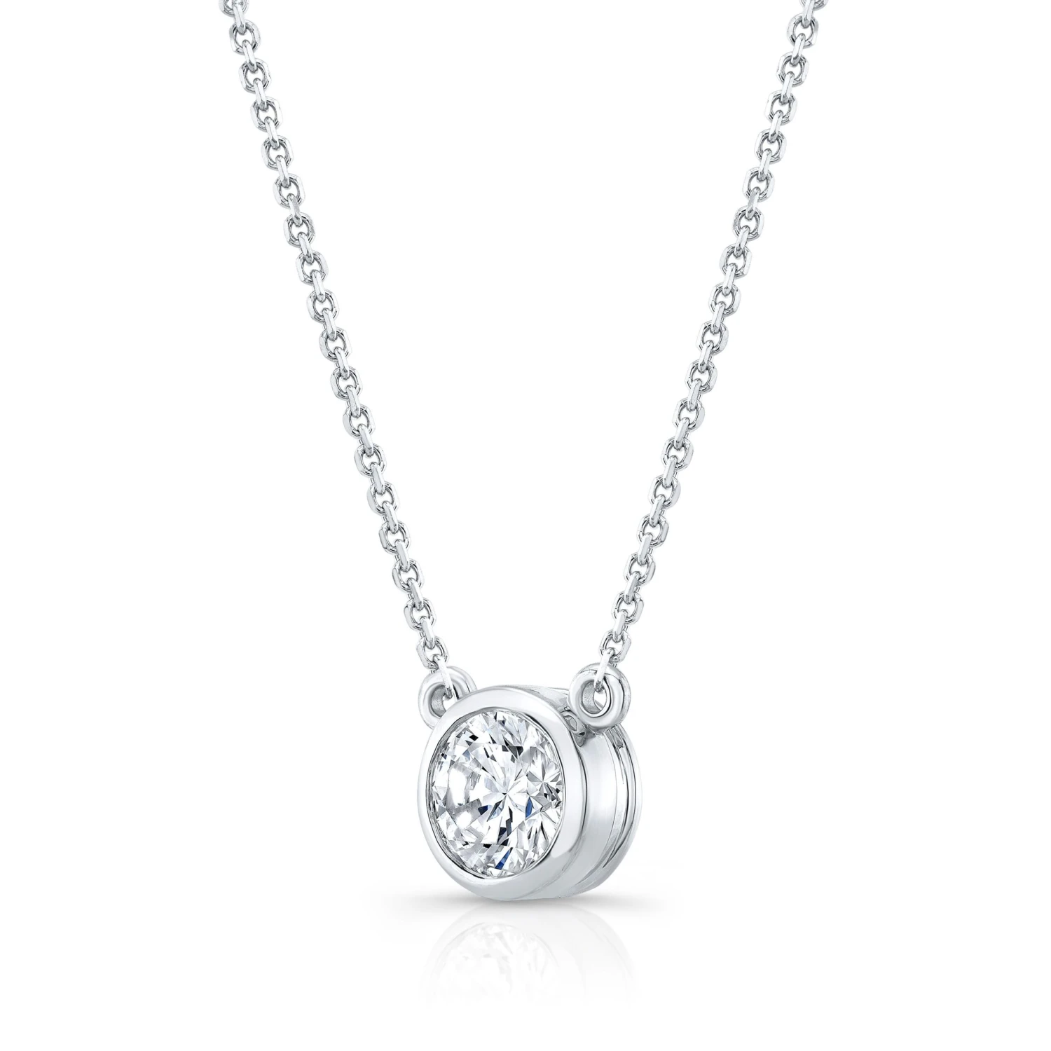 Round (full Cut) Diamond Solitaire Pendant In A 14k White Gold Bezel Centered Setting, 0.25ct. T.w. (hi, Si1-si2)
