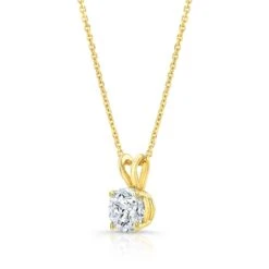 14k Yellow Gold Solitaire Pendant With 1 Round Brilliant Diamond Weighing 1.25 Carat On A 16 Inch Curb Chain