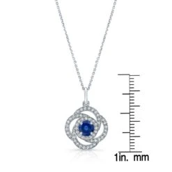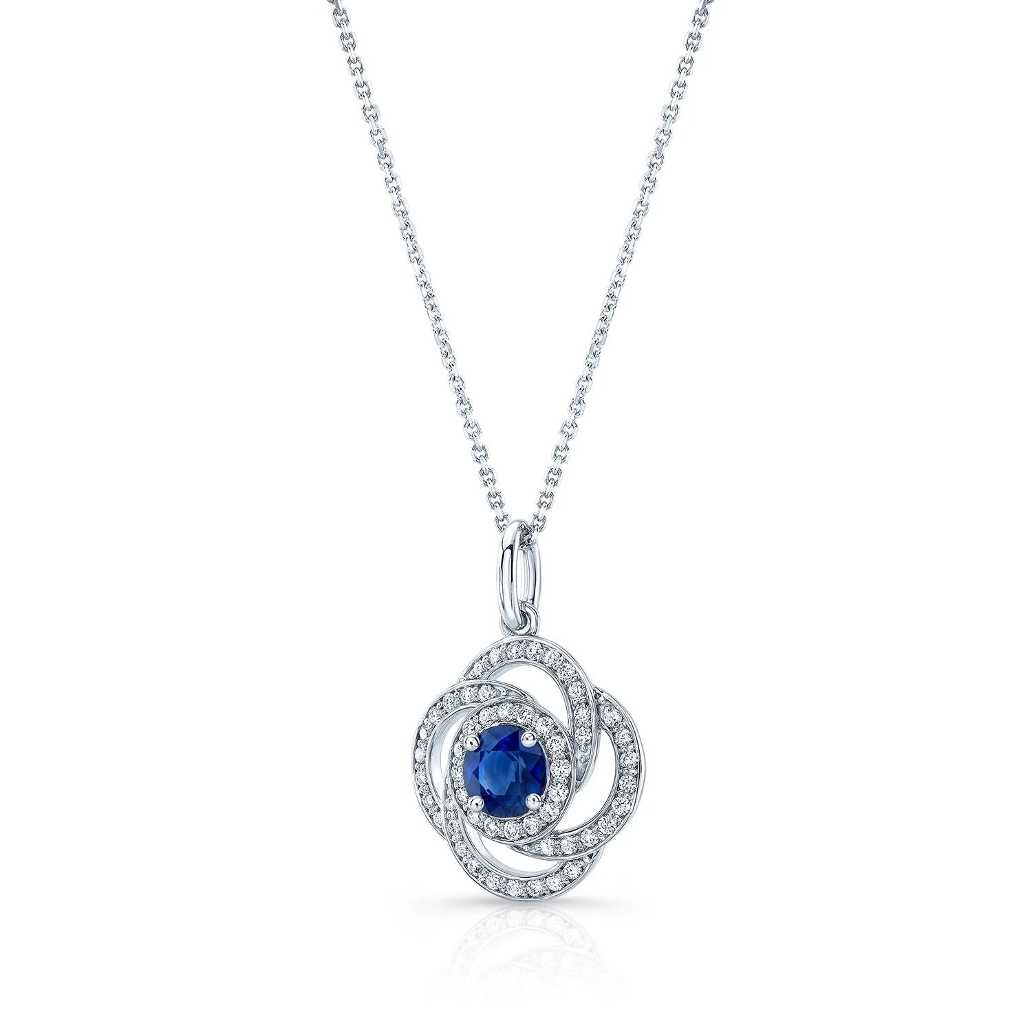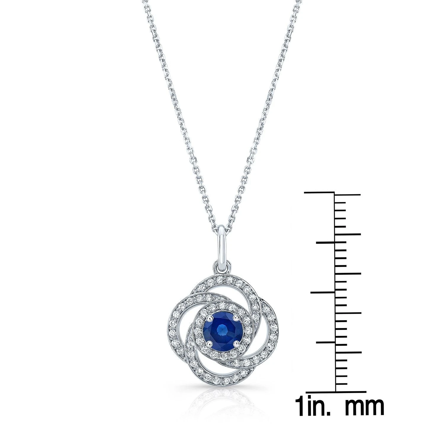 Be the first to review “Sapphire And Diamond Round Pendant With Pave Love Knot Frame In 14k White Gold (5.5mm)” Cancel reply